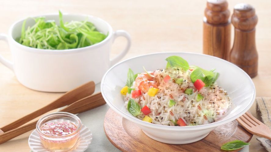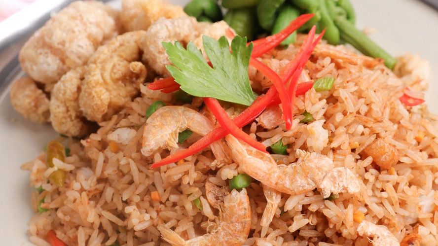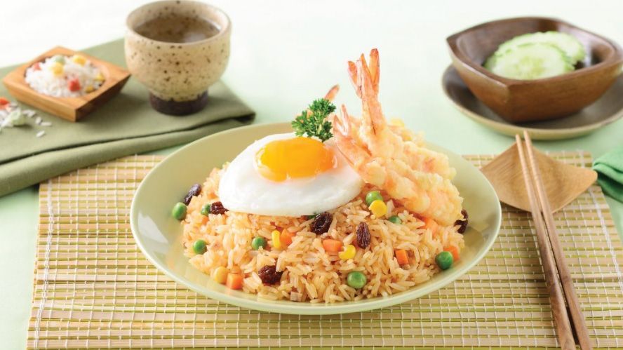 ข้าวห้าสีผัดอเมริกันหน้ากุ้งเทมปุระ