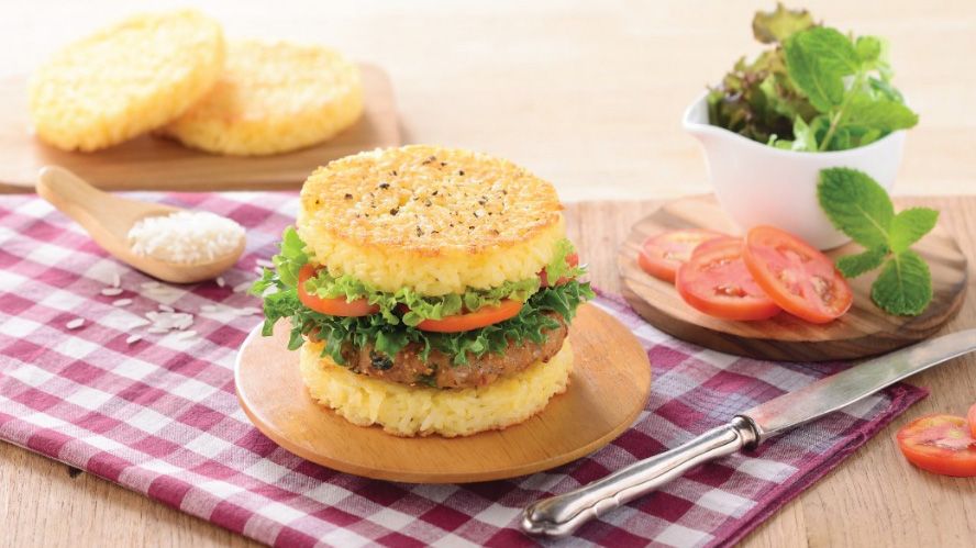 เบอร์เกอร์ข้าวหอมกับลาบหมูทอด